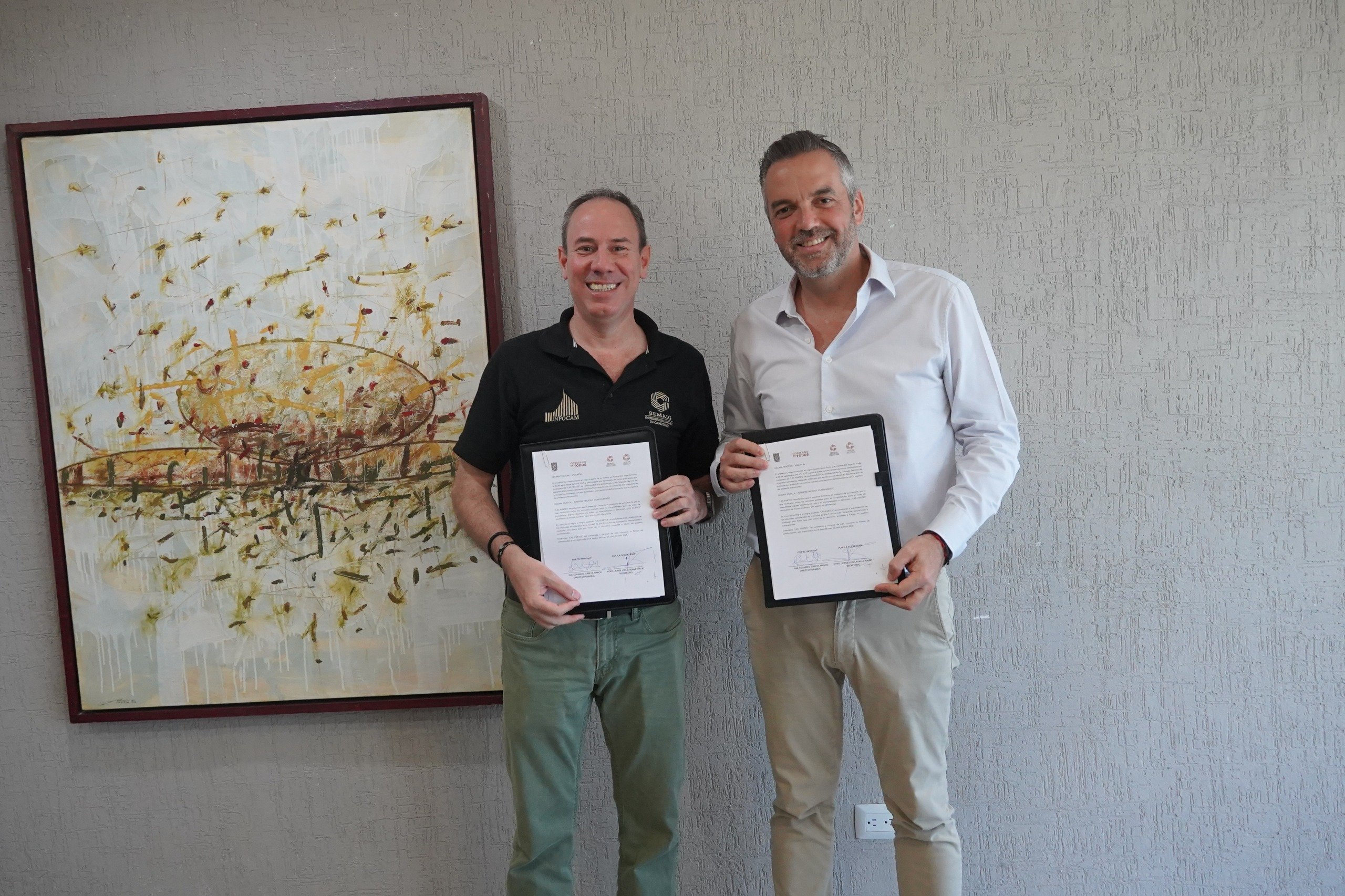 El titular de la Secretaría de Desarrollo Económico suscribió formalmente un acuerdo de colaboración con el Ingeniero Eduardo Zubieta, Director General del Instituto de Información Estadística, Geográfica y Catastral del Estado de Campeche (Infocam). Este convenio tiene como objetivo principal robustecer y optimizar el Sistema Estatal de Información.